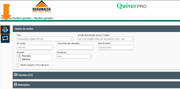O recibo será gerado em tela, clique em imprimir ou baixe o PDF no seu computador.